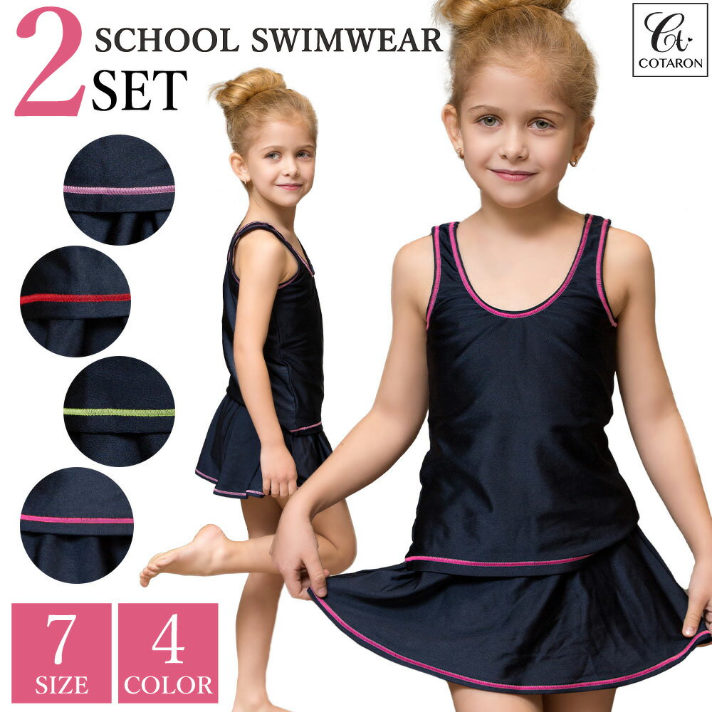 スクール水着 女の子 セパレート スカート インナー付き 水着 2点セット キッズ 子供用 学校用水着 110cm 120cm 130cm 140cm 150cm 160cm UVカット 裏地付き 透けない ネームタグ付き 幼稚園 小学生 中学生 COTARON コタロン【送料無料】